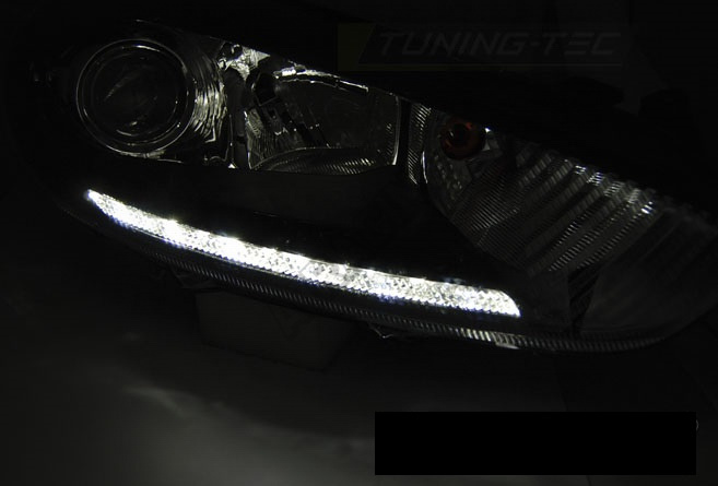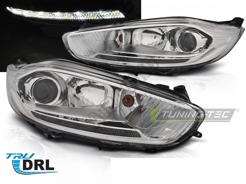 Ford Fiesta MK7 13-16 přední čirá světla LED DRL chrome (LPFO68)