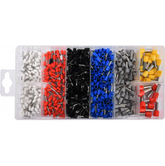 Sada 685 ks izolovaných kabelových koncovek určených ke krimpování.Vše je přehledně uspořádáno v kom