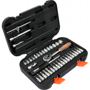 Gola sada 1/4" obsahuje 38ks: nástavce a ráčnu s plastovou rukojetí. Vyrobené z kvalitní oceli s fun