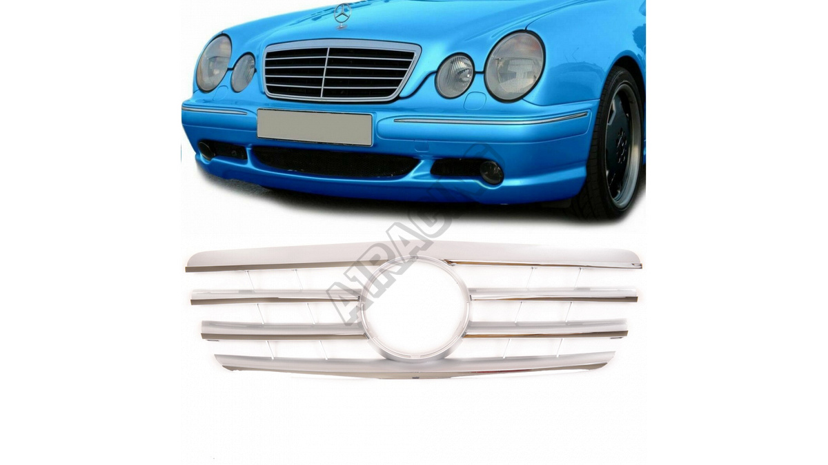 Moderní a stylová sportovní mřížka chladiče v barvě Chrome & Silver je skvělým doplňkem pro váš MERCEDES E-Class (W210) Sedan (S210) T-Model z let 1999-2002.