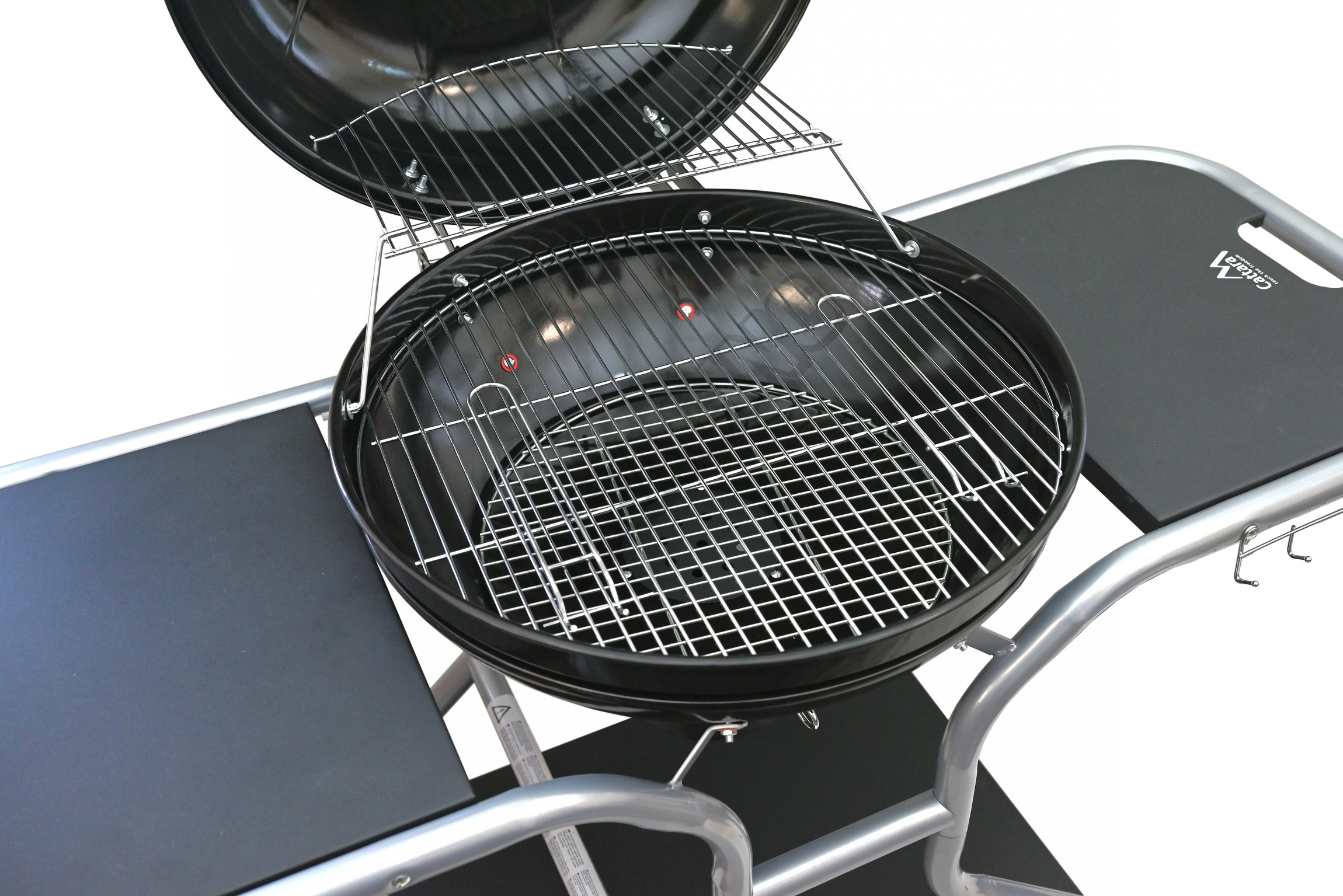 Pro tepelnou přípravu Vašich pochutin je gril opatřen roštem z chromované oceli o průměru 54 cm ve výšce 81 cm a je doplněn odkládací mřížkou pro udržení teploty již hotových pokrmů.