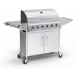 Plynový zahradní gril se systémem Flame Tamer. Hlavní grilovací prostor je osazen 6x hořáky se samostatnou regulací a piezo zapalováním. Díky možnosti vypnout prostřední hořáky je gril vhodný jak pro přímé, tak pro nepřímé grilování a je vybaven odkládacím roštem pro udržování teplot již hotových pokrmů.