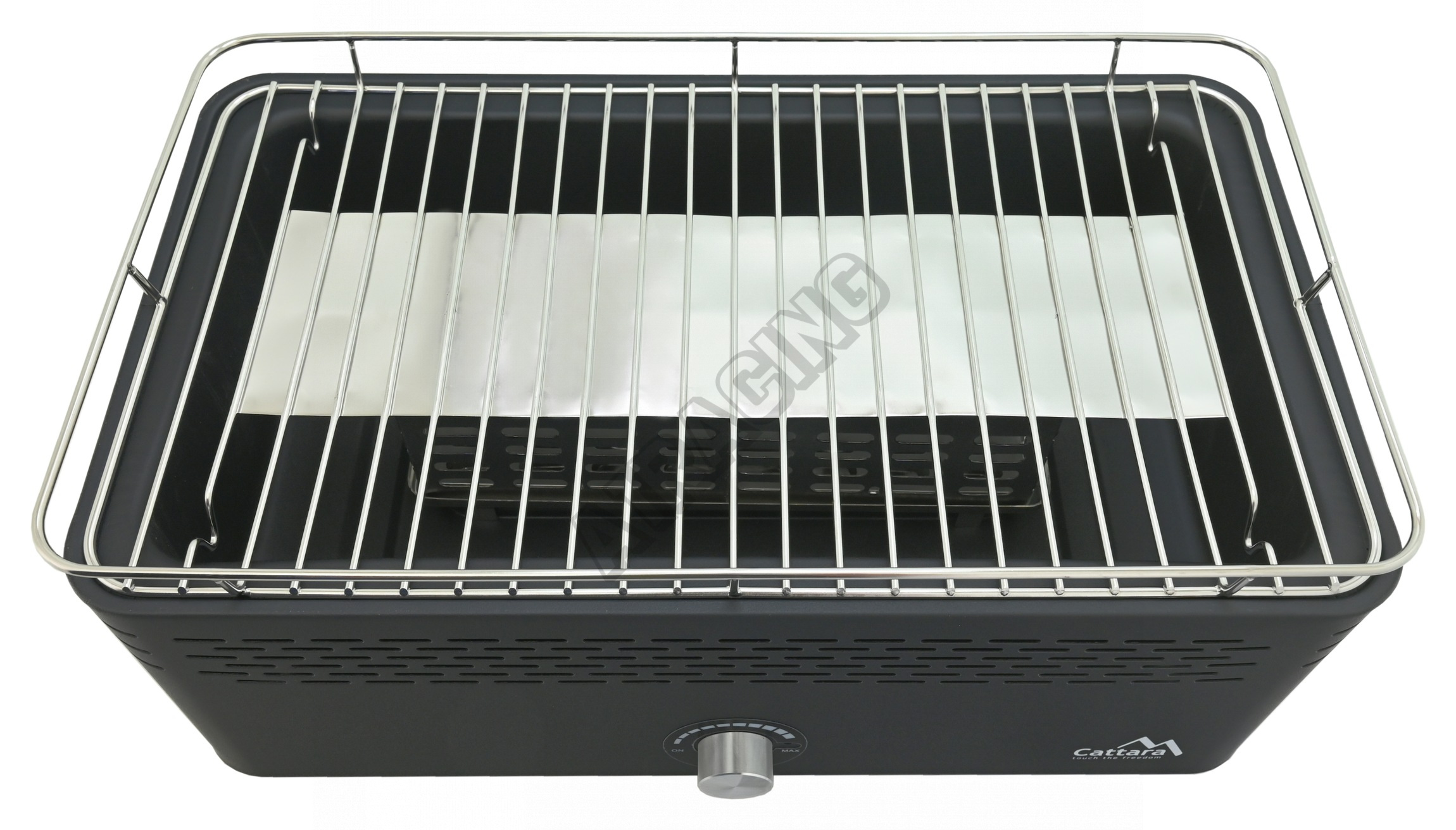 Mezi hlavní výhody tohoto grilu patří zabudovaný větrák, napájený pomocí 4x AA baterií (nejsou součástí balení), který se používá pro rychlé zapálení ohně a následné rozhoření dřevěného uhlí. Větrák lze regulovat, nebo zcela vypnout pomocí otočného voliče na čelní straně.
