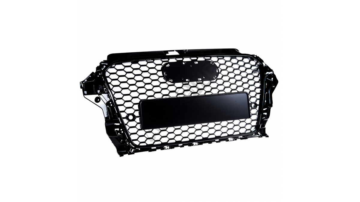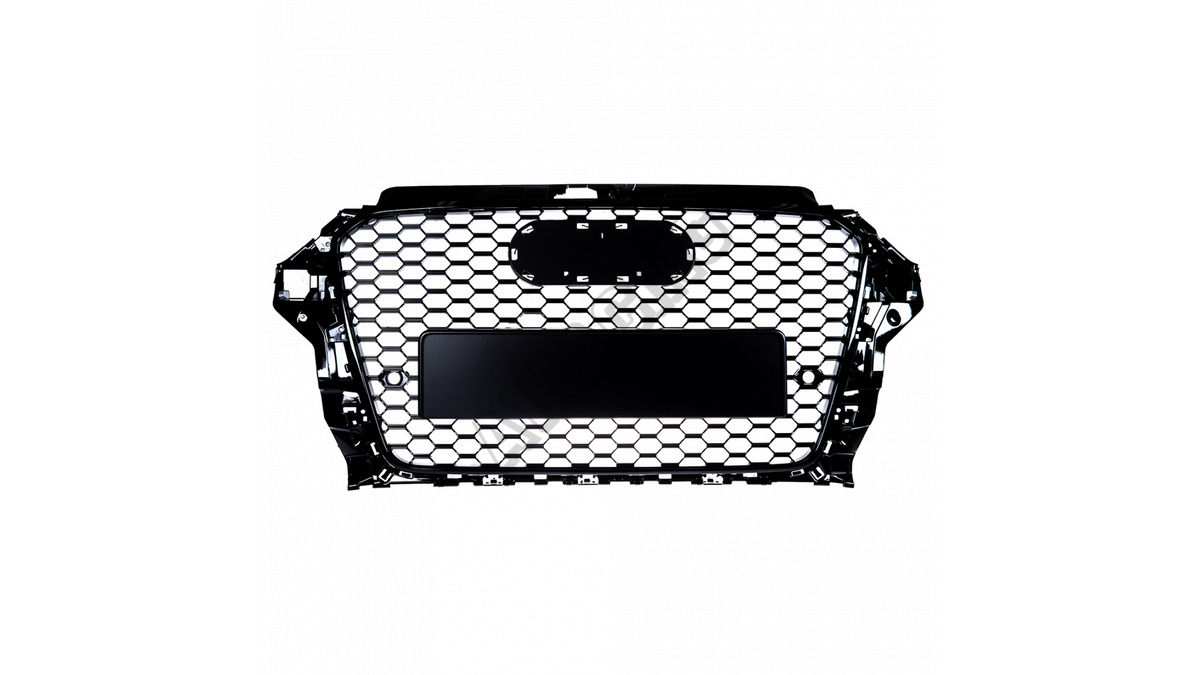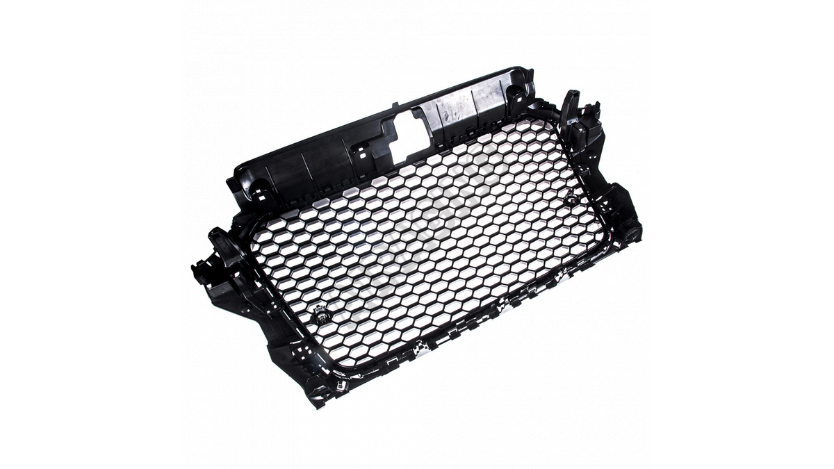 Jedná se o gril určený k montáži na přední část vozidla, ideální pro AUDI A3 (8V) s možností vybavení vozu předními parkovacími senzory.