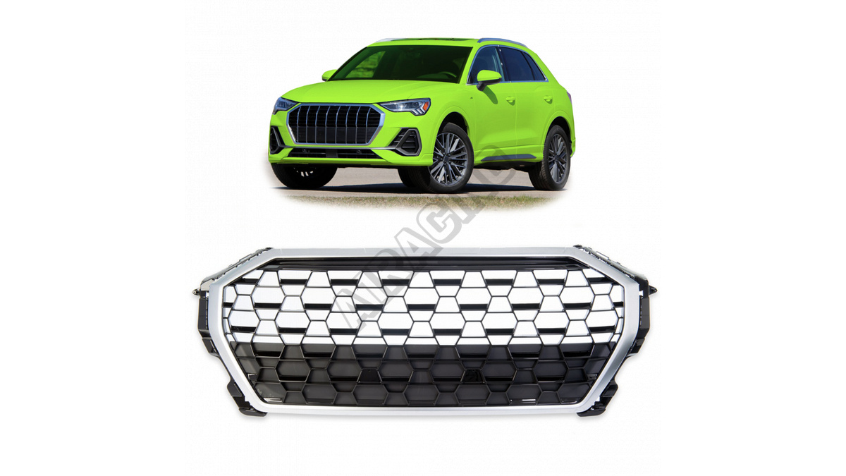 Tato výjimečná sportovní mřížka Silver & Gloss Black je určena pro AUDI Q3 (F3), model SUV vyráběný od roku 2019.