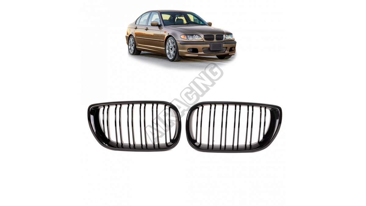 Sportovní dvojitá žebra mřížky jsou namontována na přední části vozidla, což z něj činí vynikající doplněk moderního vzhledu BMW 3 (E46).