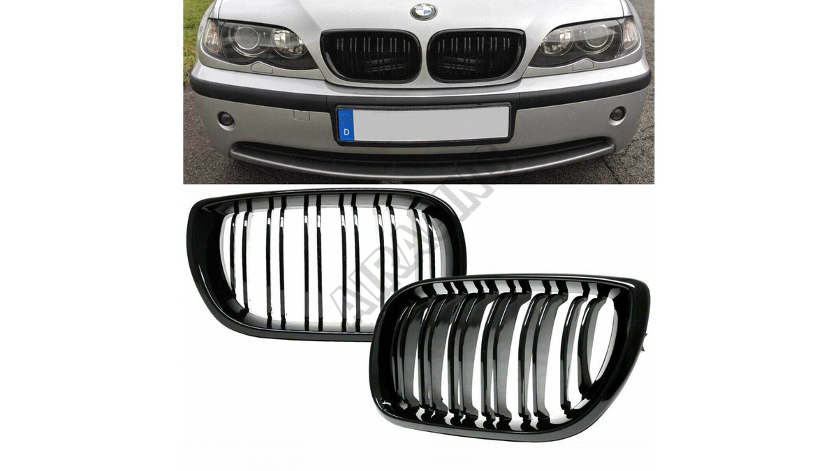 Sportovní mřížka dvojité žebrování Gloss Black je ideálním doplňkem pro BMW 3 (E46) ve verzi Sedan, Touring nebo Compact vyráběné v letech 2001-2005.