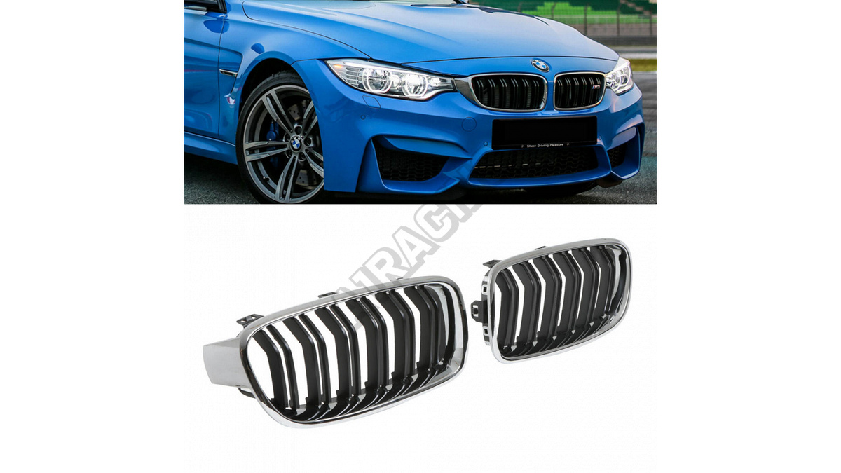 Mřížka BMW 3 F30 F31 dvojité žebrování Chrom & Černá