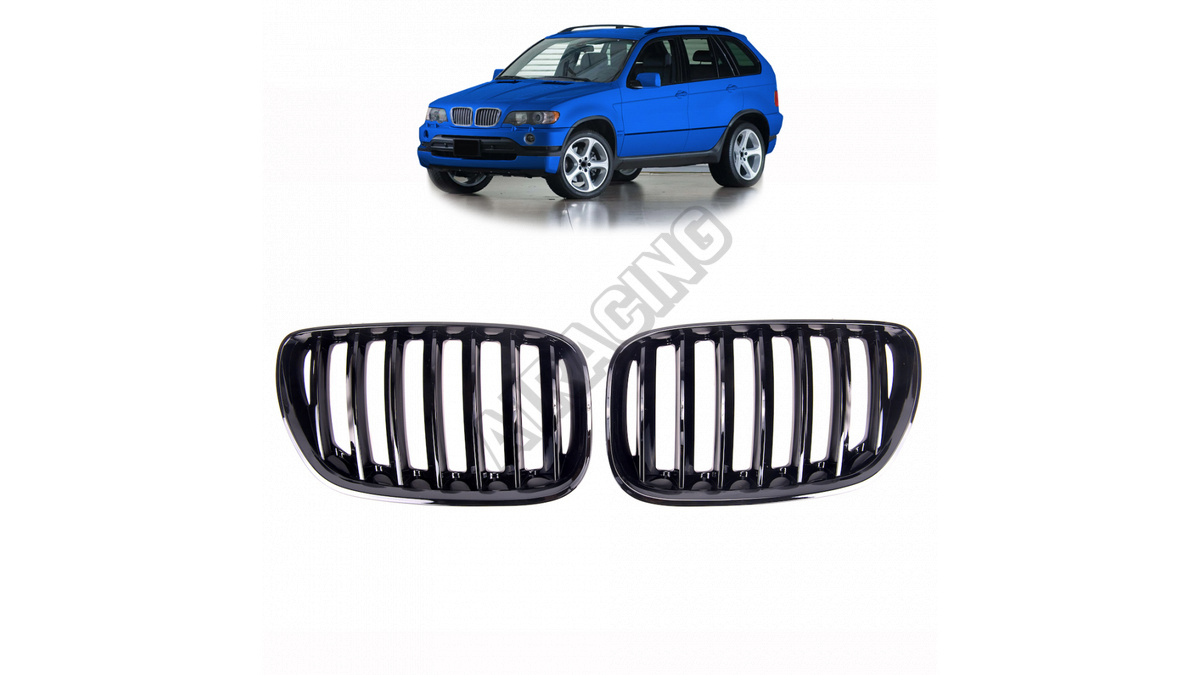 Lesklá černá přední mřížka je vysoce kvalitní přední mřížka vyrobená z ABS plastu, která dokonale pasuje na BMW X5 (E53) z let 2003-2007.