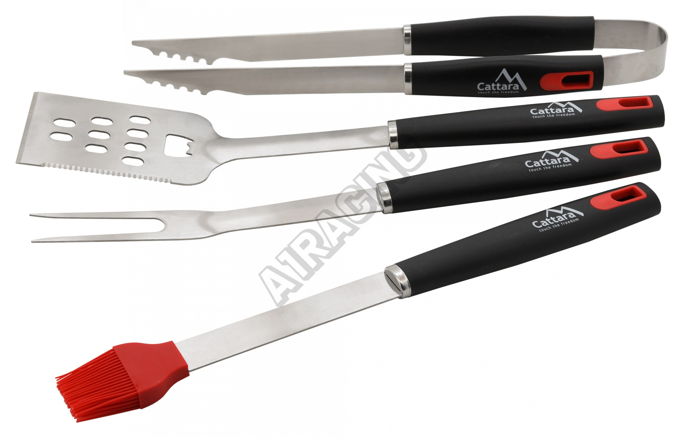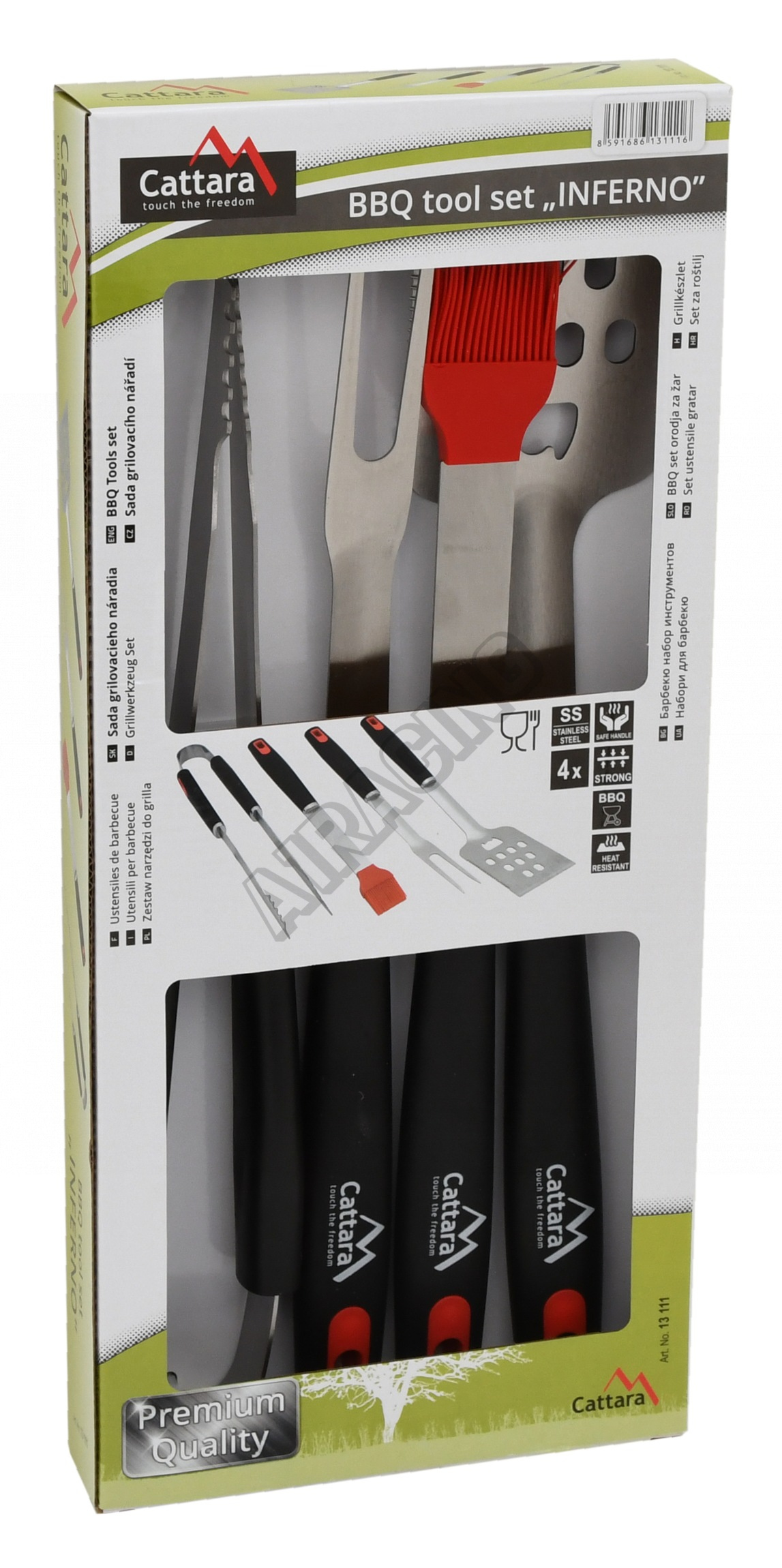 Sada nářadí prémiové kvality INFERNO, skládající se z obracečky, vidličky, kleští a mašlovačky. Nářa
