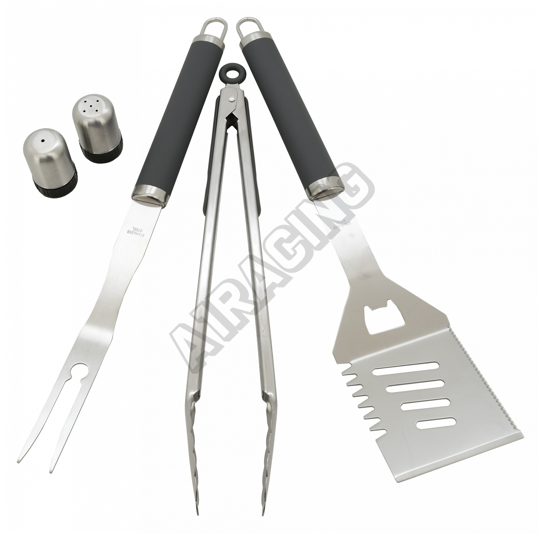 Kleště jsou opatřeny zoubkováním pro jisté uchycení mastných pokrmů a mají délku 40 cm. Dvouzubá vidlička s délkou 44 cm. Obracečka délky 43,5 cm s precizně zabroušenou hranou, zoubkováním a odtokovými otvory pro otáčení masitých ale i jiných pokrmů.