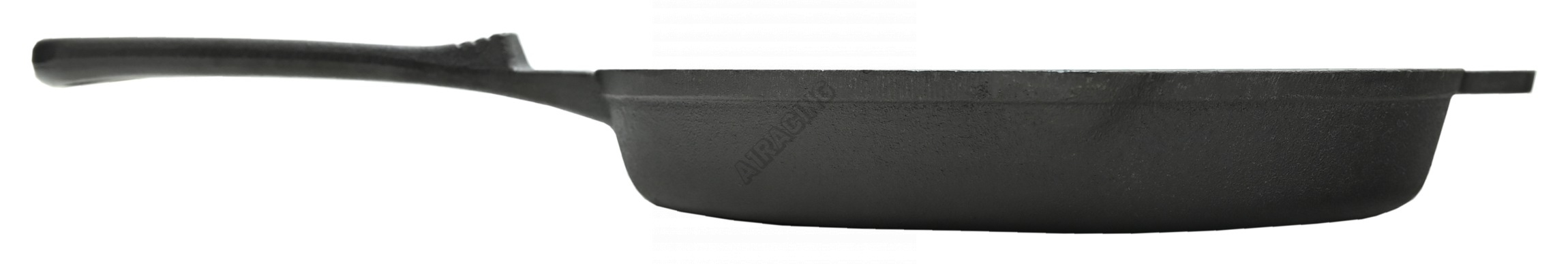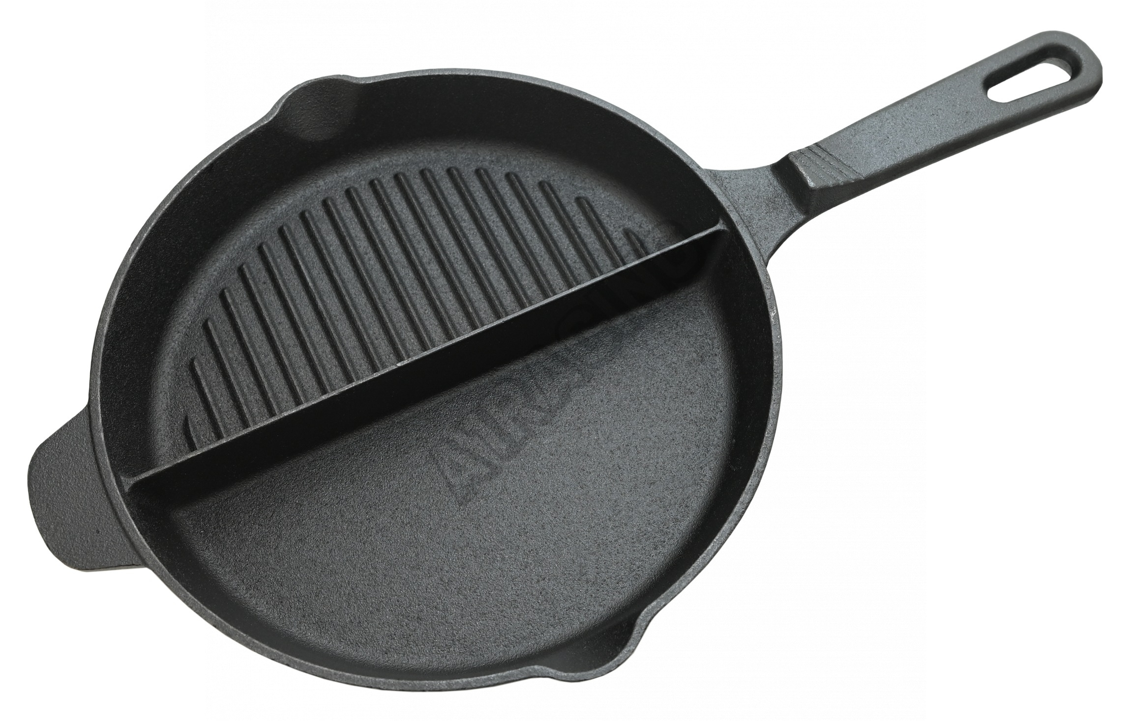 Grilovací pánev z litiny průměru 25cm se dvěma prostory pro přípravu pokrmů.