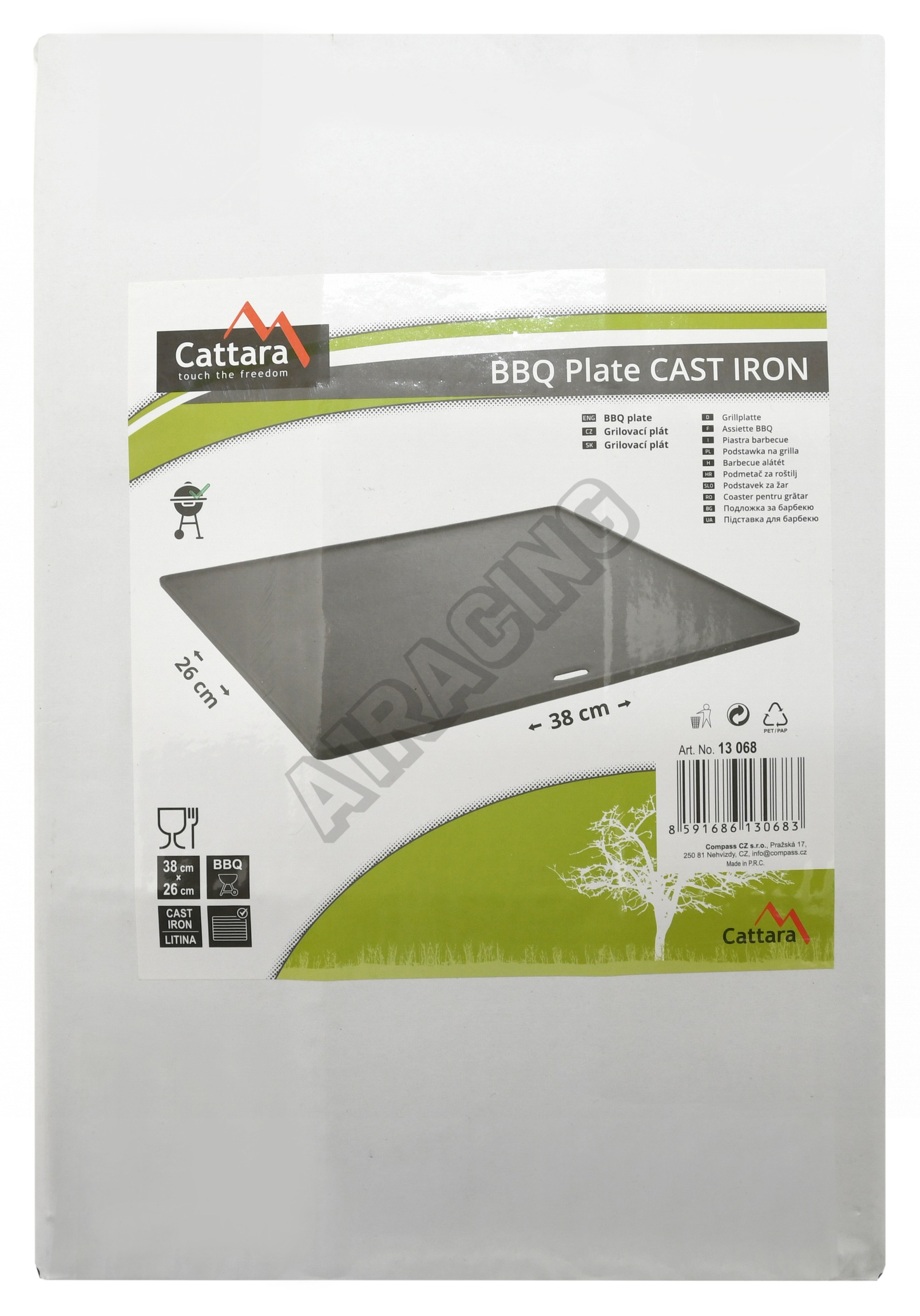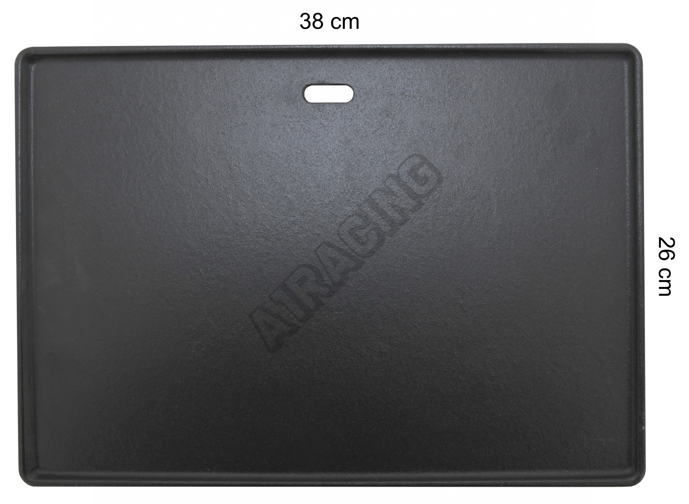 Grilovací plát z litiny o rozměrech 26 x 38 cm pro grilování pokrmů.