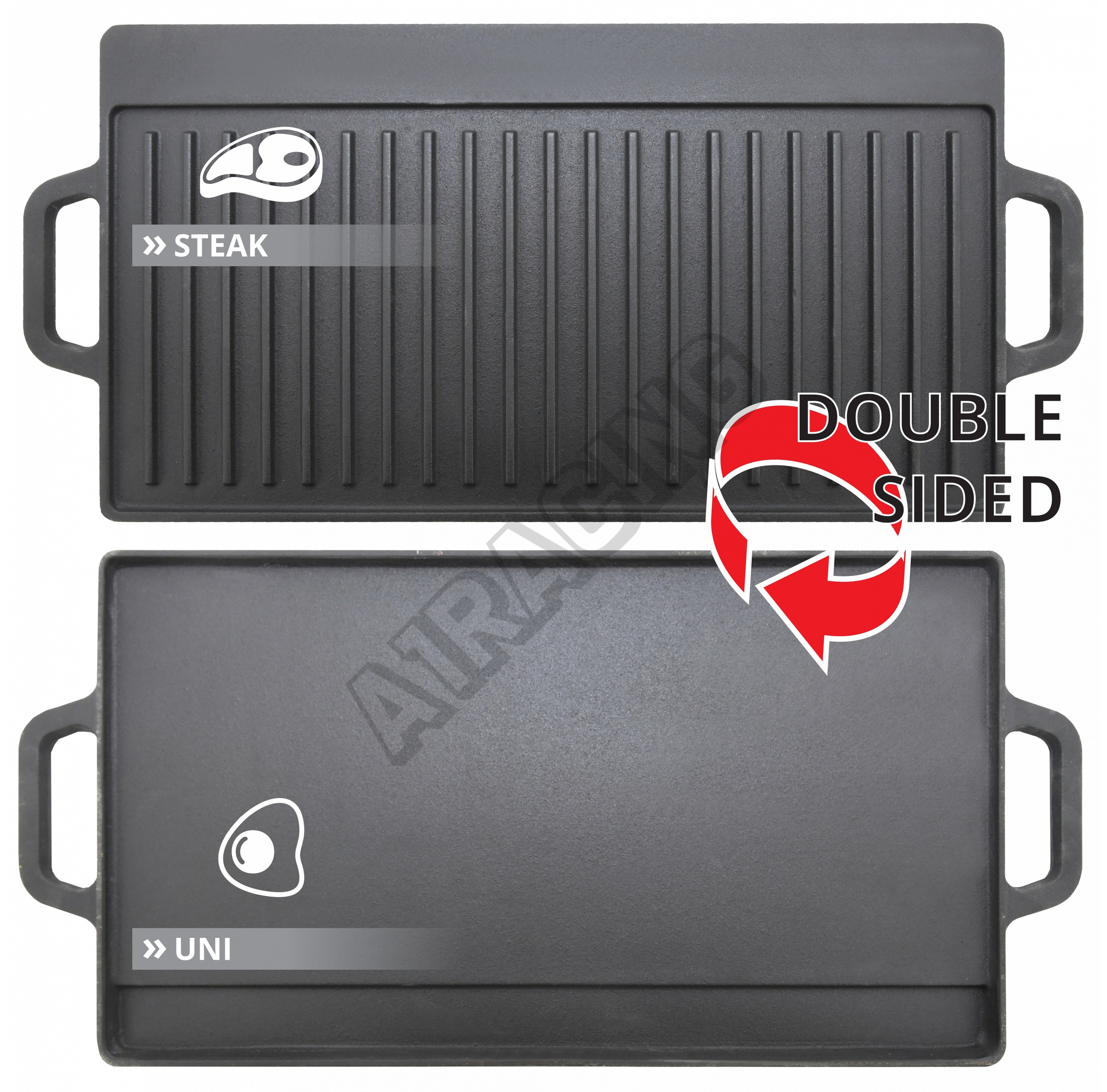 Oboustranný grilovací plát pro grilování masitých, ale i ostatních pokrmů. Plát je vyroben z litiny