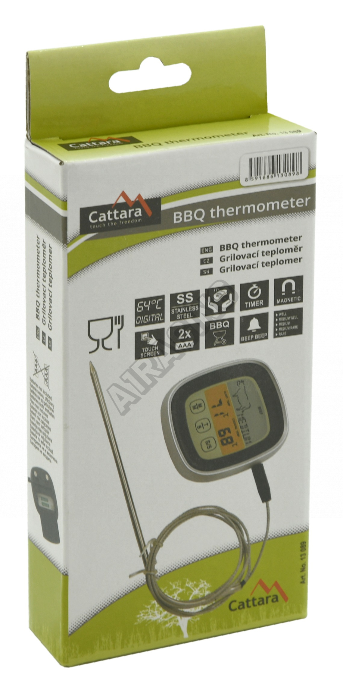 U přístroje lze nastavit jak druh masa, tak požadovaný stupeň propečení, nebo použít jako časovač. Ovládání je řešeno praktickým dotykovým displejem a vypínání spolu s přepínačem teploměru a časovače na zadní straně zařízení.
