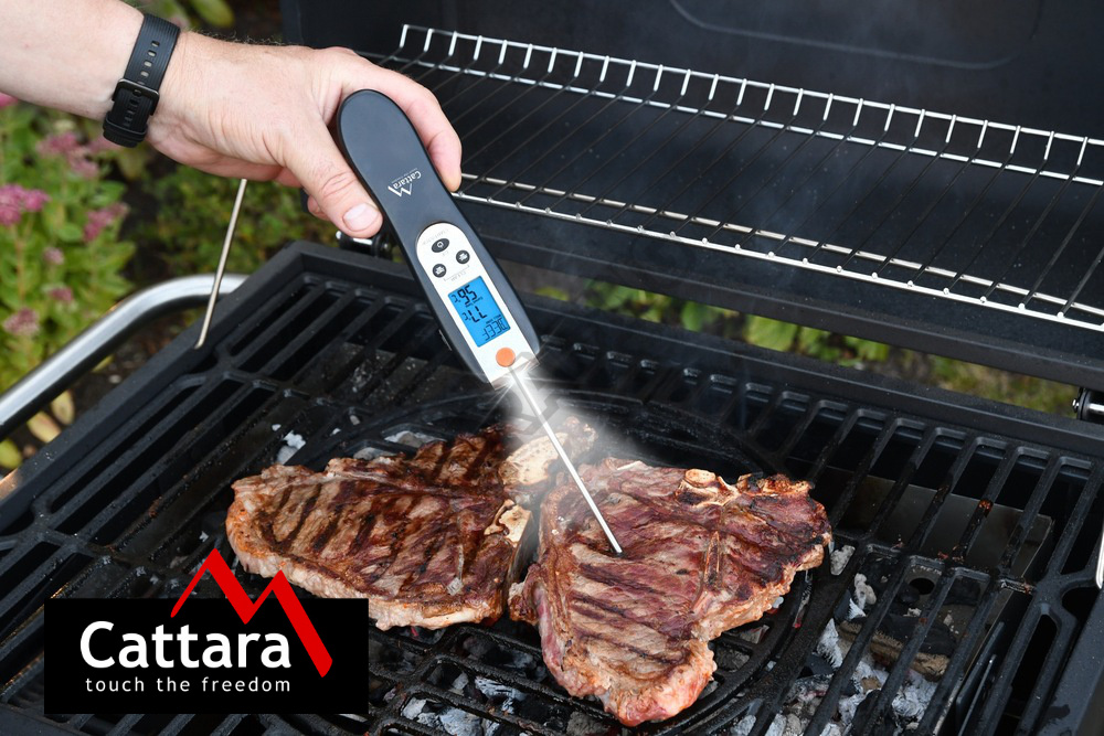 Praktický, skládací pomocník pro grilování opatřený digitálním teploměrem, či časovačem a chytrým nastavitelným prostředím.