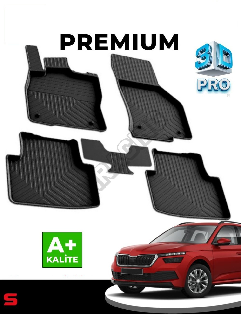 Gumový set 4D přesných autokoberců Škoda Kamiq včetně krytu zadní střední části