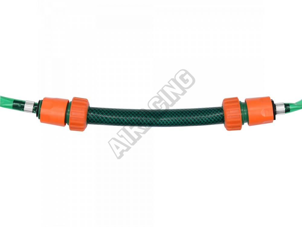 Hadice vybavená 2 konci, oba pro připojení rychlospojkou. Jeden konec s maticí. Šroubovací uzávěr - uzavření systému, odšroubovaný - pokračování systému. Spojení mezi hadicí postřikovače a tradiční hadicí je možné pomocí univerzální rychlospojky. Její výběr závisí na průměru vaší zahradní hadice (1/2", 3/4" nebo 1"). Doporučuje se použít plastové rychlospojky (mosaz nemusí pasovat).