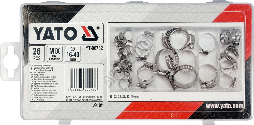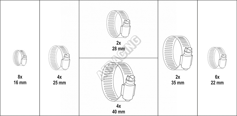 Sada 26 ks kvalitních hadicových spon s šestihranným šroubem.