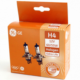 Halogenová žárovka H4 Extra Life značky General Electric s extrémně dlouhou životností, 12V, sada 2ks.
