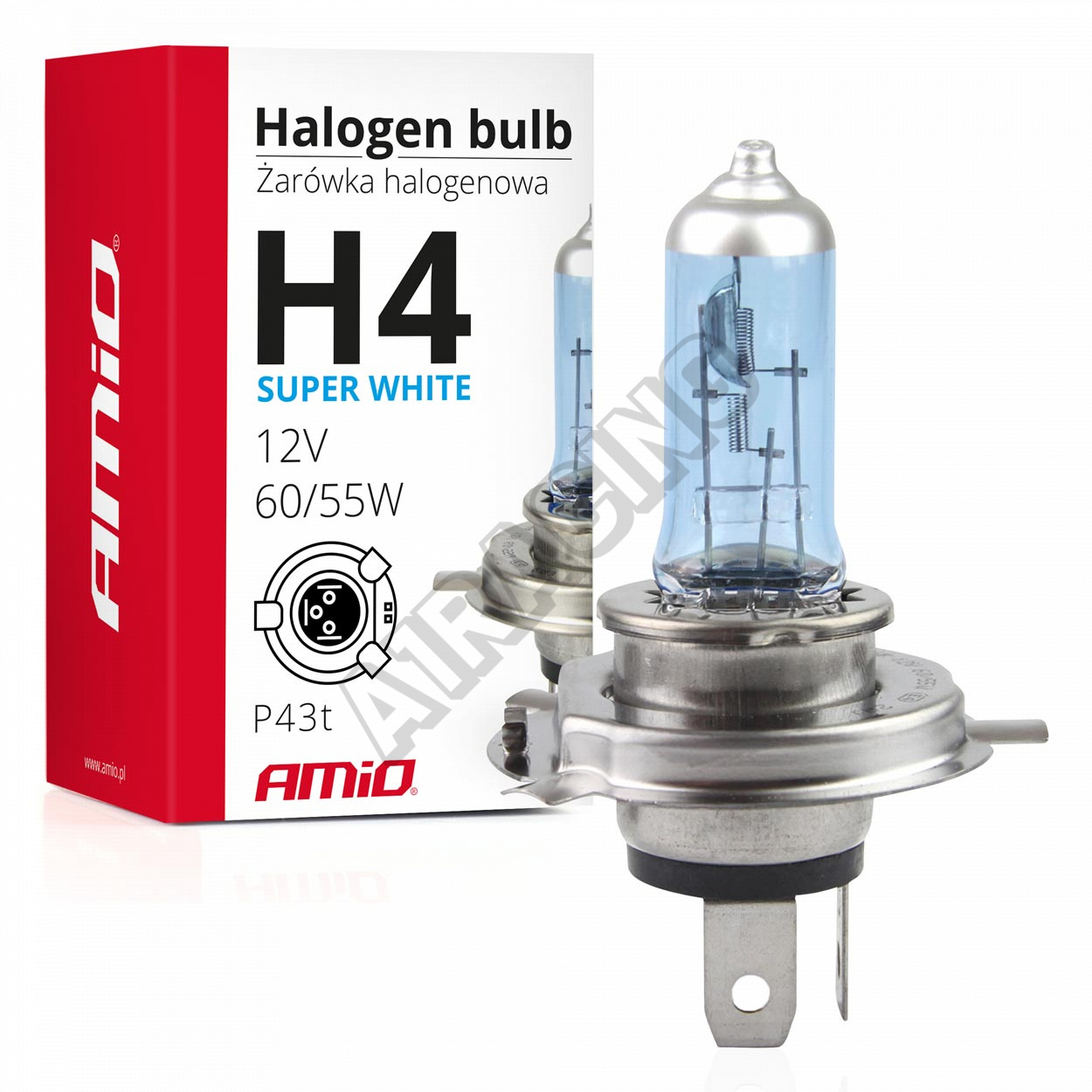 Halogenová žárovka H4 12V 60/55W Vertex Super Whitex - 1 ks E homologace Jasněší bílé světlo, díky