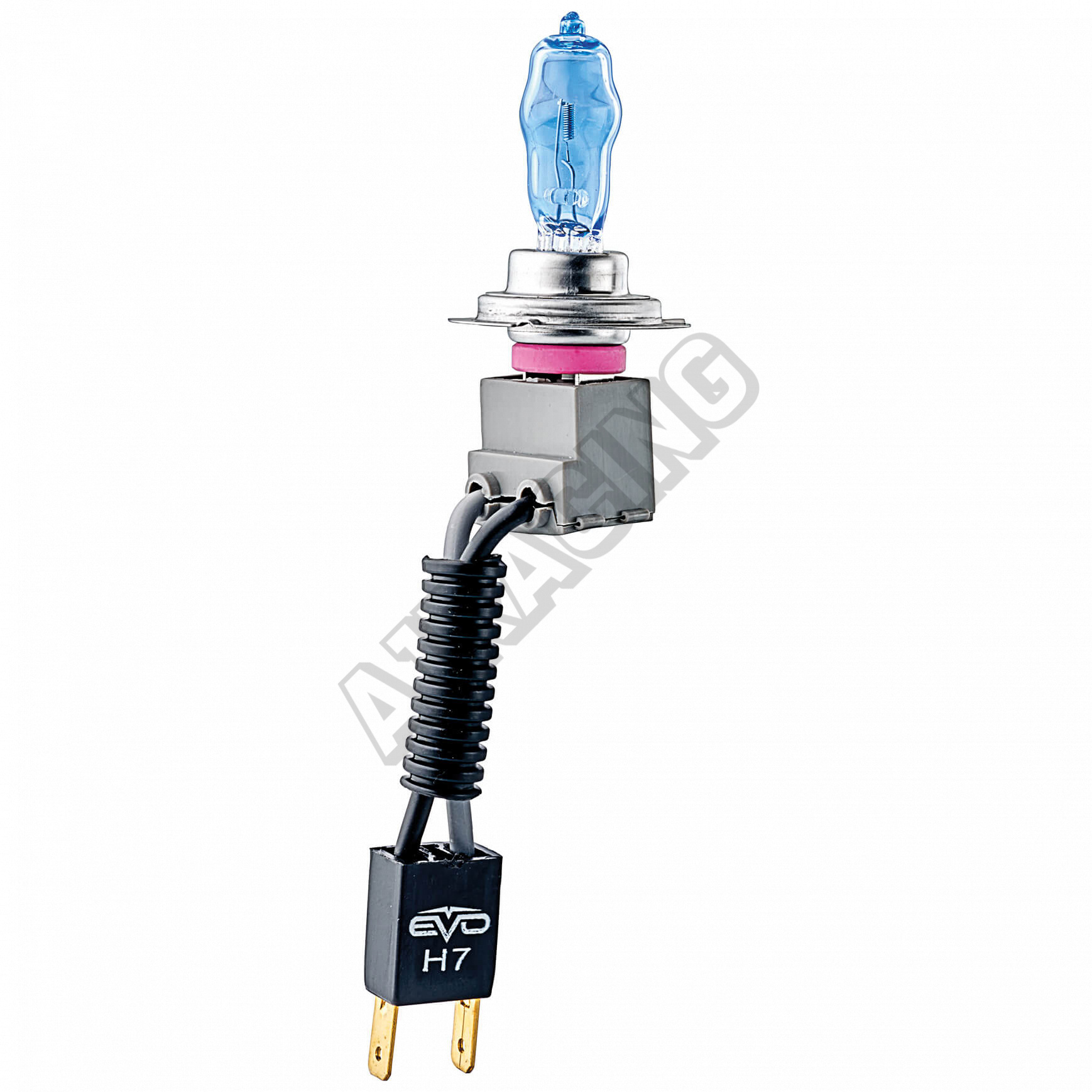 Halogenové žárovky EVO High Lumen White dostupné v 6 různých provedeních [H1, H4, H7, H11, HB3 (9005) a HB4 (9006)] v blistrovém balení s 2 žárovkami v balení. Žárovky nahrazují původní světlomety za účelem zlepšení viditelnosti díky vysokému výkonu 4,300 kelvinů a 85 W vydávajícím 2,300 lumenů což je více než dvojnásobná intenzita než původní žárovky.
