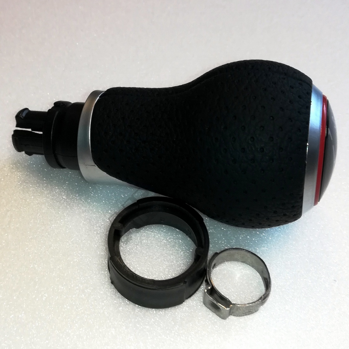 Otvor pro řadící tyč je 12mm. Součástí balení hlavice řadící páky Audi je kovový kroužek k upevnění na řadící tyč a plastový kroužek k upevnění manžety.