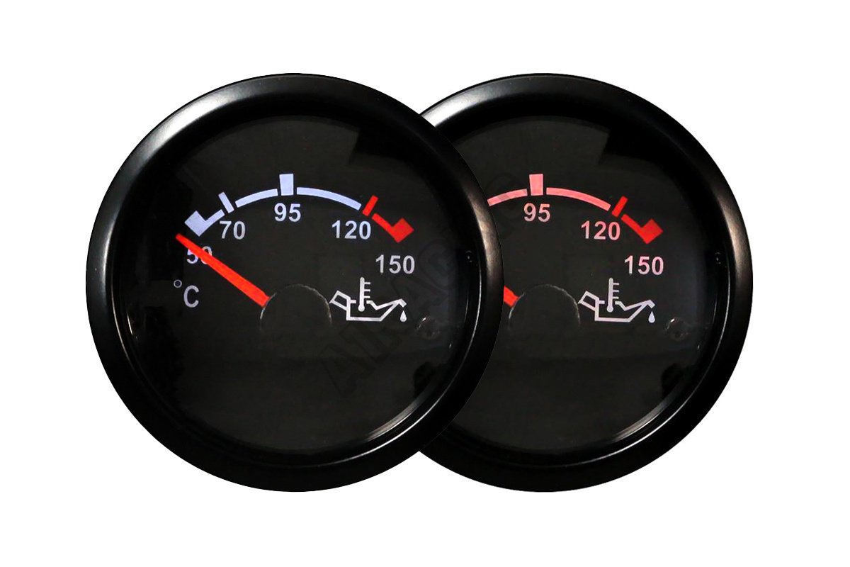 Hodiny AutoGauge Série T90 Vodotěsná konstrukce, černý rám z nerezové oceli Teplota oleje Rozsah prá