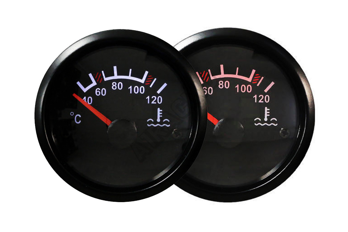 Hodiny AutoGauge Série T90 Vodotěsná konstrukce, černý rám z nerezové oceli Teplota vody Rozsah prác