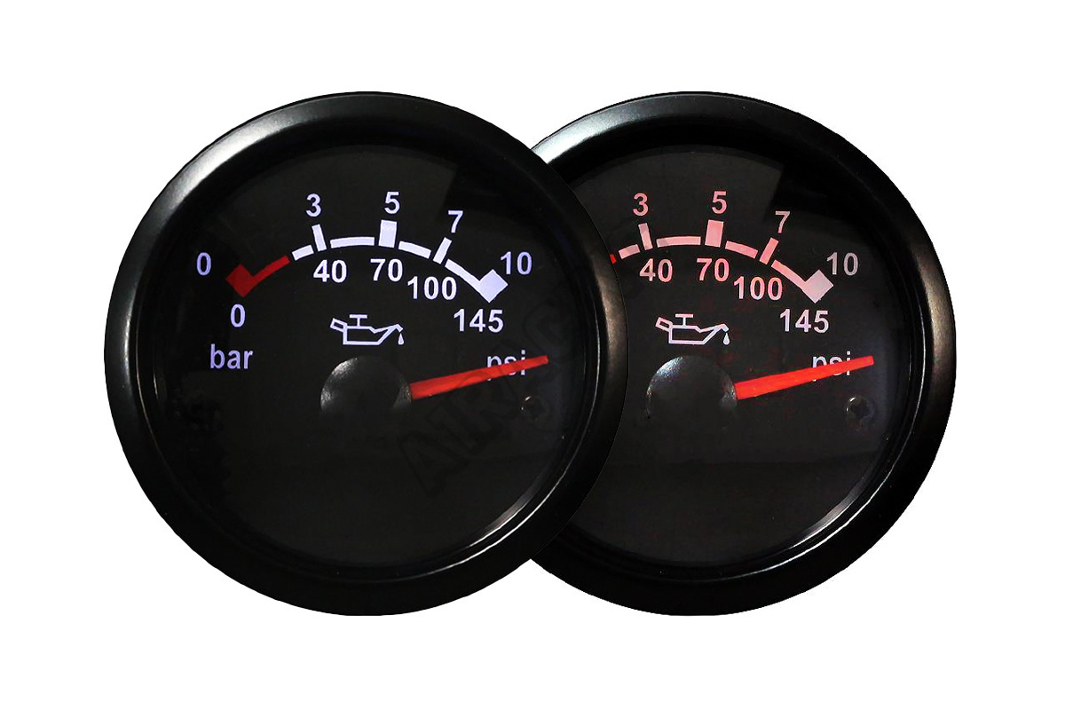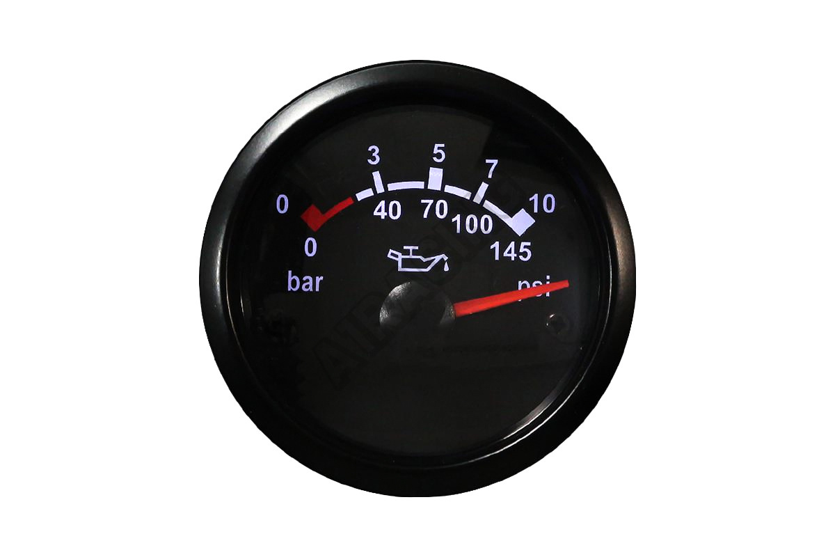 Hodiny AutoGauge Série T90 Vodotěsná konstrukce, černý rám z nerezové oceli Tlak oleje Rozsah práce: