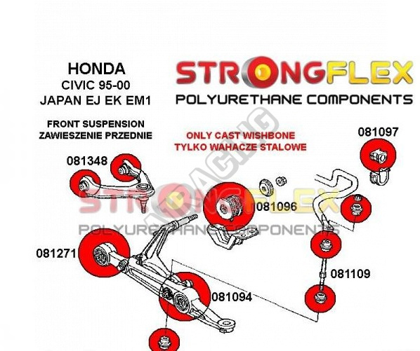 Honda Civic 1996-2000 StrongFlex sestava silentbloků jen pro přední nápravu 14 ks obsahuje :