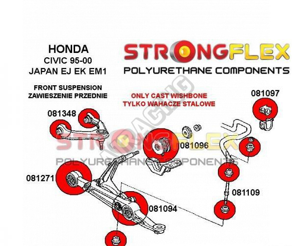 Honda Civic 1996-2000 StrongFlex Sport sestava silentbloků jen pro přední nápravu 14 ks obsahuje :