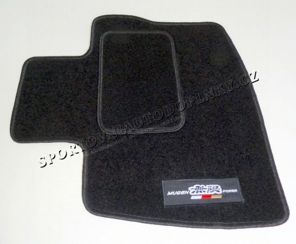 Naši firmou na zakázku vyrobené autokoberce, které se nedají srovnávat s běžným velkosériovým provedením, budou určitě vhodným interierovým doplňkem pro vaše auto. Pokud by jste si je nechali vyrabět individuálně. Cena by se vyšplhala někde v rozmezí 1200-1500,- Kč v této kvalitě provedení. Tyto autokoberce jsou vyráběny z prémiového materiálu, který se bežně používá třeba pro vozy Audi, BMW nebo Mercedes. Síla koberce je 5 mm. Běžné provedení má vetšinou jen okolo 2-3 mm. Spodní část je dostatečně drsná, aby nedocházelo k posunutí. Všechny tyto autokoberce pasují přesně pro daný model a jsou obšity po celém obvodu. Logo Mugen je zvýrazněno na přeních kobercích. Koberec u řidiče má navíc v místě největšího namáhání našitu ještě jednu vrstvu viz galerie fotek