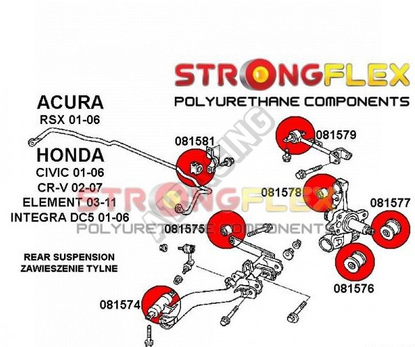 Honda CRV 2002-07 StrongFlex sestava silentbloků jen pro zadní nápravu 14 ks obsahuje: