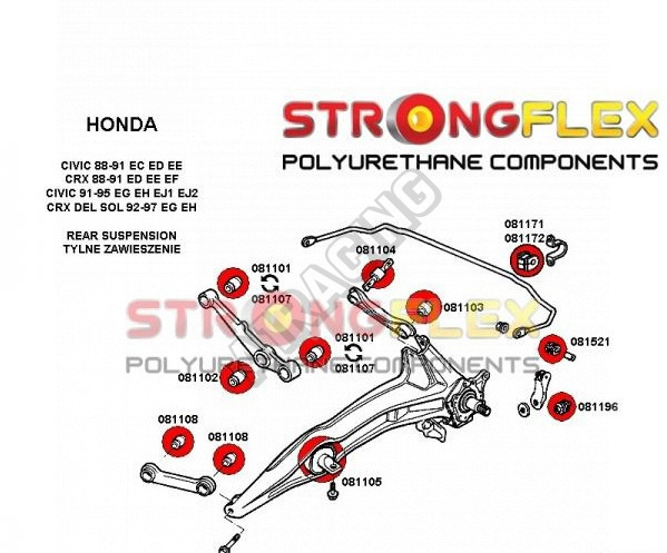 Honda CRX 1992-97 StrongFlex sestava silentbloků jen pro zadní nápravu 22 ks Tvrdší silentbloky dod