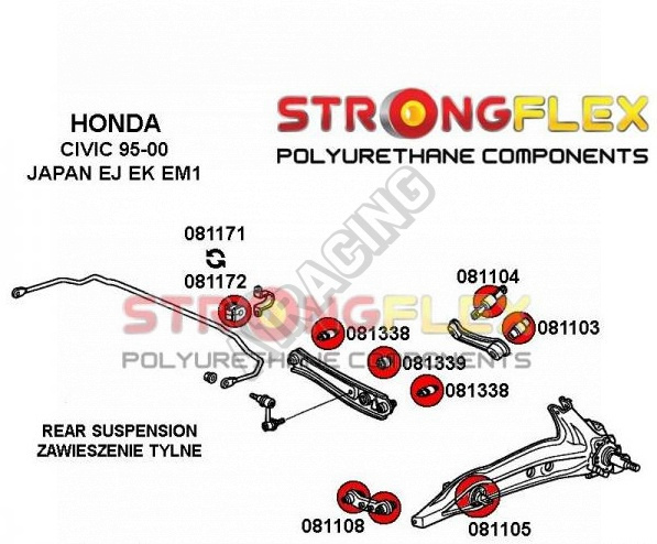 Honda CRX 1992-97 StrongFlex Sport kompletní sestava silentbloků 36 ks