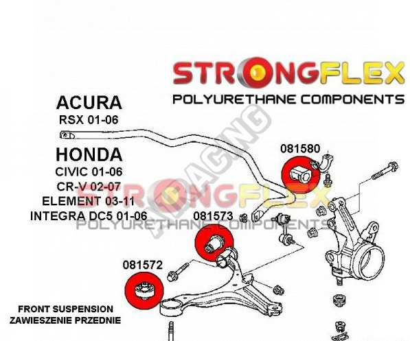 Honda Integra StrongFlex Sport (tvrdost 90ShA) kompletní sestava silentbloků na celé auto obsahuje :