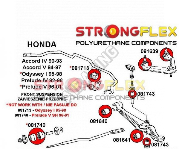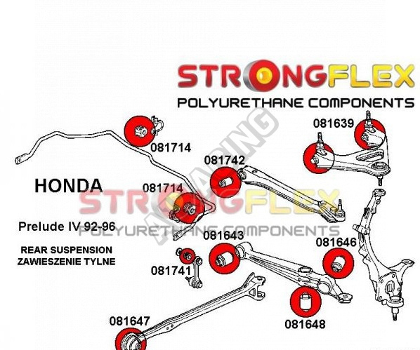 Honda Prelude StrongFlex (tvrdost 80ShA) kompletní sestava silentbloků na celé auto obsahuje :