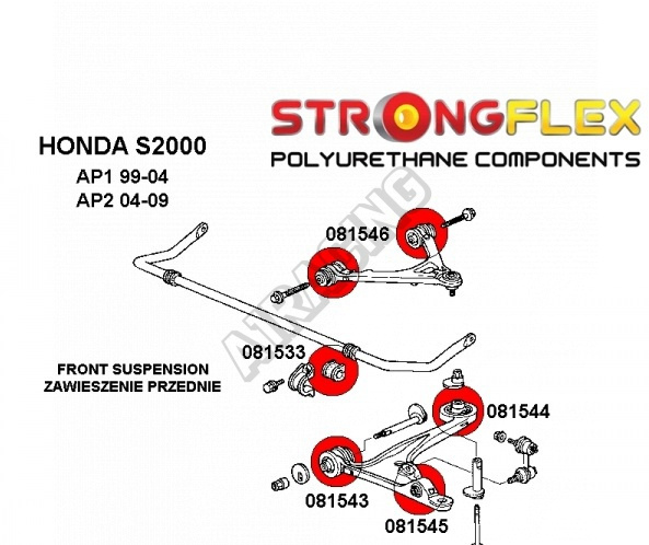 Honda S2000 StrongFlex Sport sestava silentbloků jen pro přední nápravu 12 ks obsahuje: