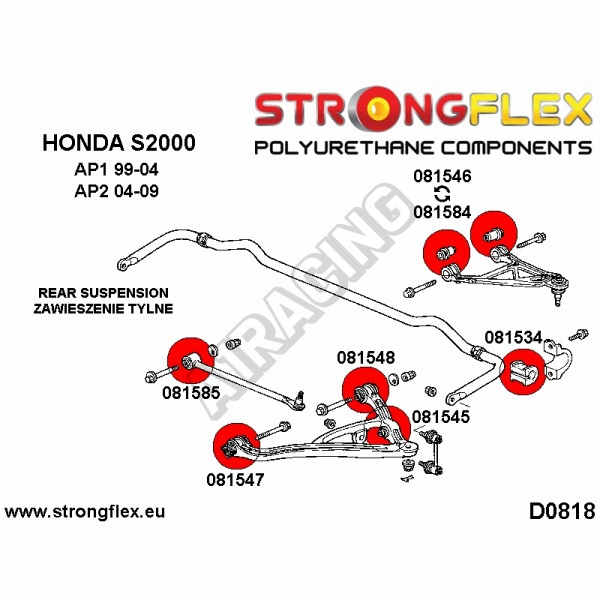 Honda S2000 2005-09 StrongFlex Sport sestava silentbloků jen pro zadní nápravu 14 ks obsahuje: