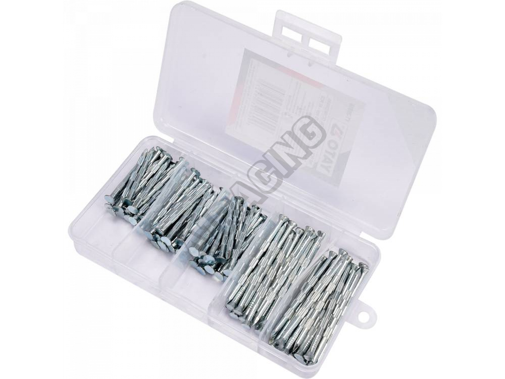 Sada hřebíku na betonu. Vyrobeno z vysoce kvalitních materiálů. Široká škála velikostí zajišťuje výběr prvků vhodných pro zatížení, metodu upevnění a povrchu.