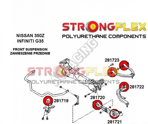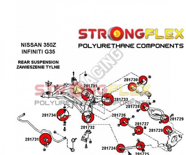 Infinity G35 2003-07 StrongFlex Sport (tvrdost 90ShA) kompletní sestava silentbloků na celé auto obsahuje :