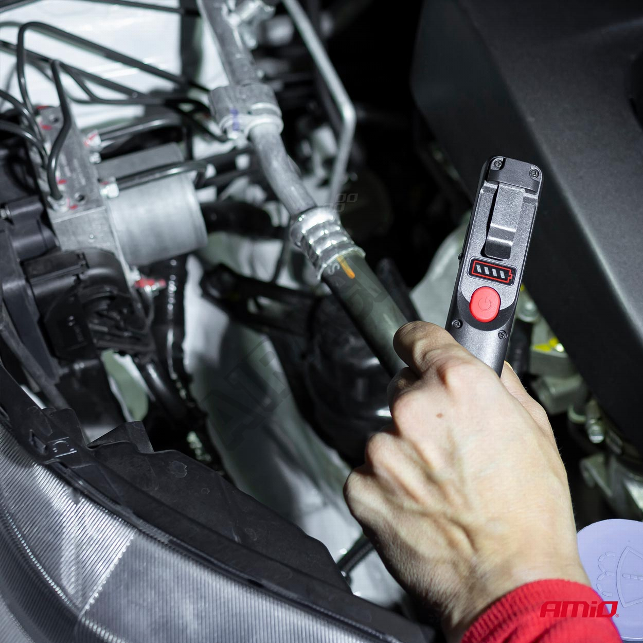 Baterka se silným světlem umožňuje provádět potřebné opravy i pozdě večer. Prezentovaná dílenská lam