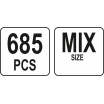 Sada 685 ks izolovaných kabelových koncovek určených ke krimpování.Vše je přehledně uspořádáno v kom
