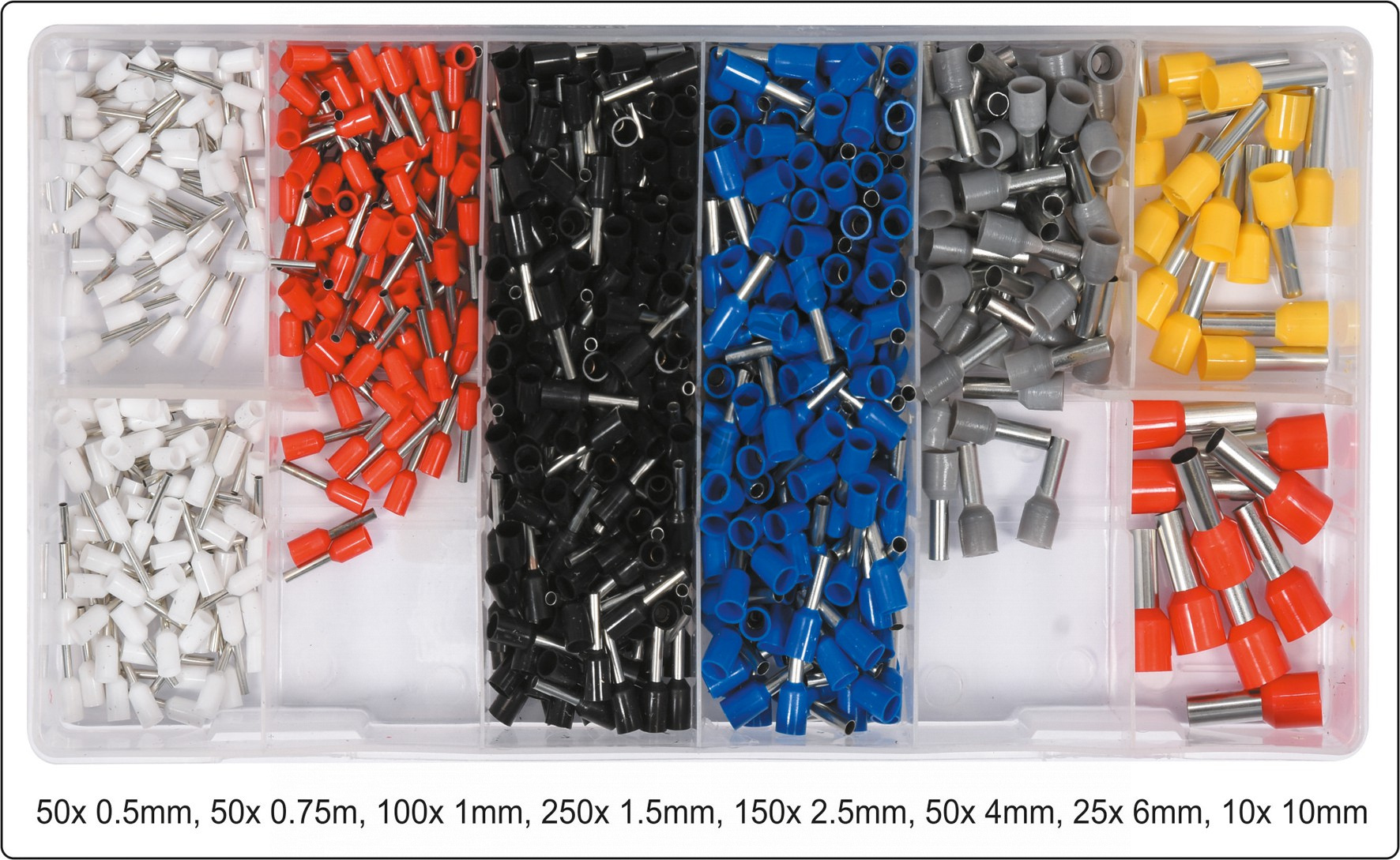 Sada 685 ks izolovaných kabelových koncovek určených ke krimpování.