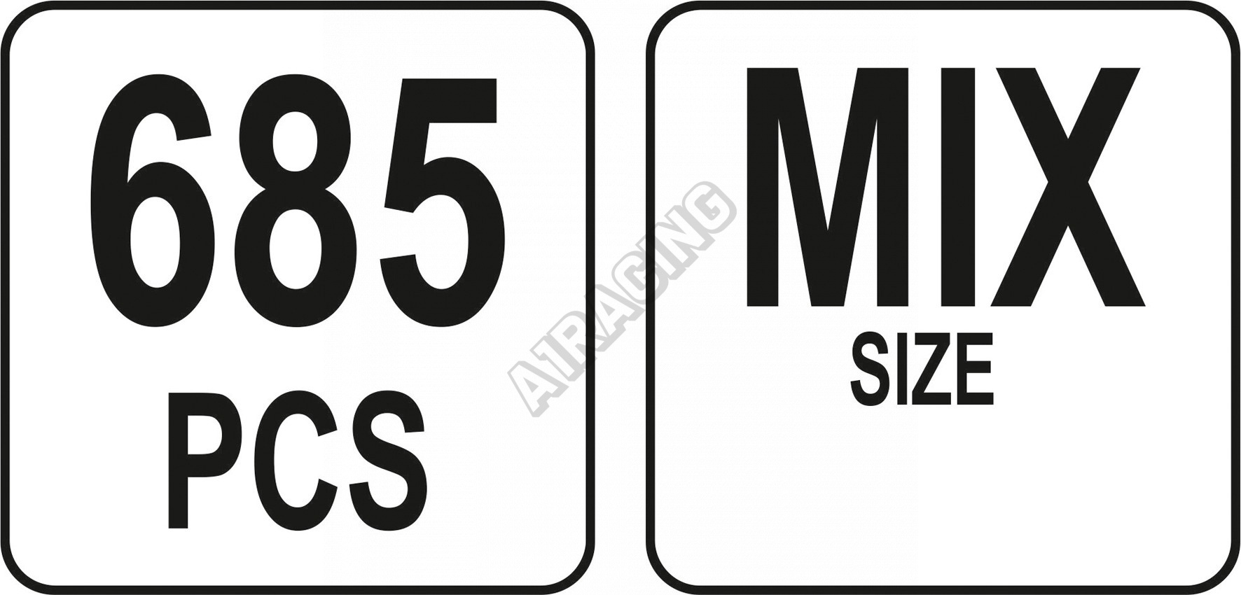 Sada 685 ks izolovaných kabelových koncovek určených ke krimpování.Vše je přehledně uspořádáno v kom