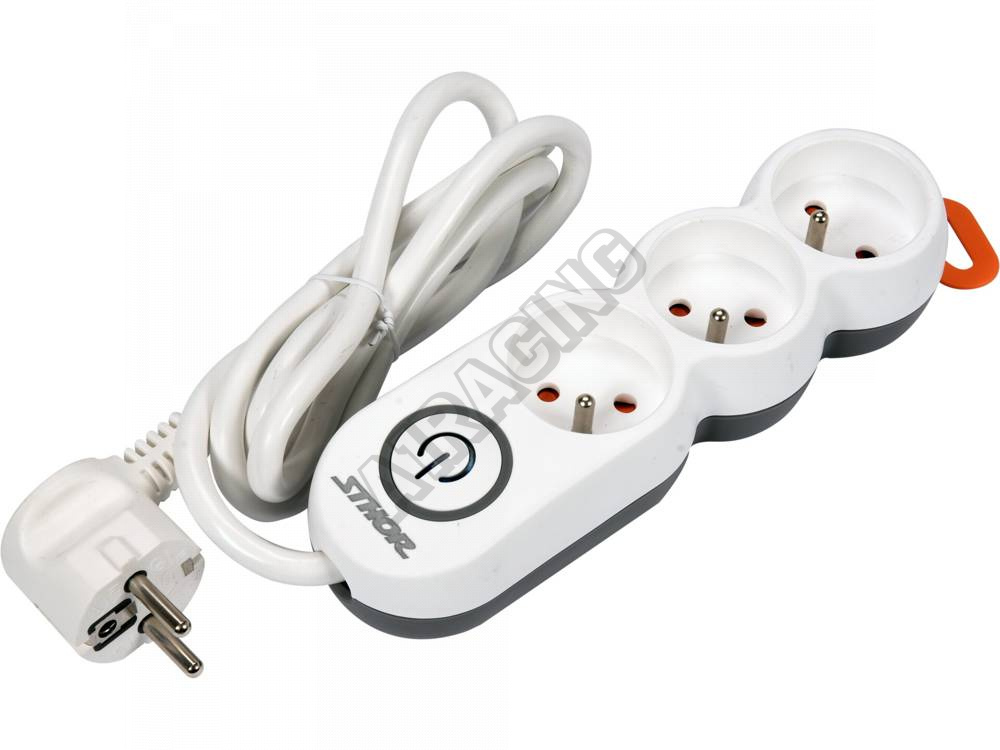 Prodlužuvací kabel, který má uzemněné zásuvky a vypínač od značky Sthor.