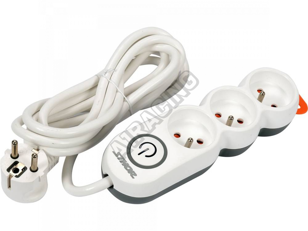 Prodlužuvací kabel, který má uzemněné zásuvky a vypínač od značky Sthor. Pevný třížilový kabel se zv