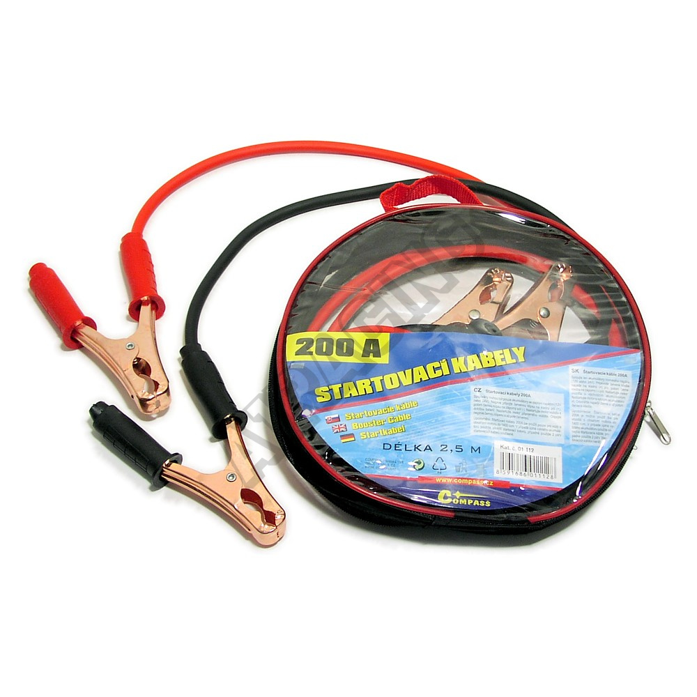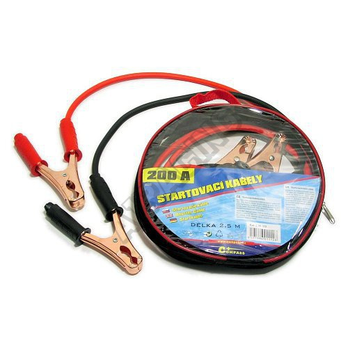 Kabel je vyroben ze 100% mědi. Neobsahuje žádné přísady jiných kovů, které snižují účinnost startovacích kabelů. Barevně označené startovací kabely se svorkami na akumulátor. Max. proud 200 ampér, délka 2,5 metru. Uzavíratelné balení "zipper bag", snadné uložení startovacích kabelů do praktického na zip uzavíratelného obalu. DOT