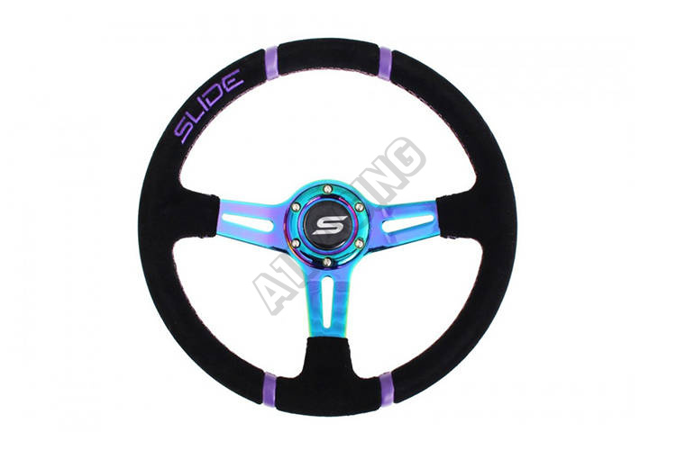 Volant SLIDE je vysoce kvalitní příslušenství určené pro automobilové nadšence, kteří chtějí zlepšit ergonomii, komfort a přesnost řízení svého vozidla. Díky své sportovní konstrukci a estetice se volanty SLIDE dokonale osvědčí ve vozidlech připravených na jízdu na okruhu. Tato verze volantu se vyznačuje výjimečným provedením z semiše, což zajišťuje jistý úchop a pohodlí při používání. Navíc, dvojité fialové pruhy na obruči nejen dodávají sportovní charakter, ale také usnadňují přesné určení centrální polohy volantu, což zvyšuje kontrolu nad vozidlem.